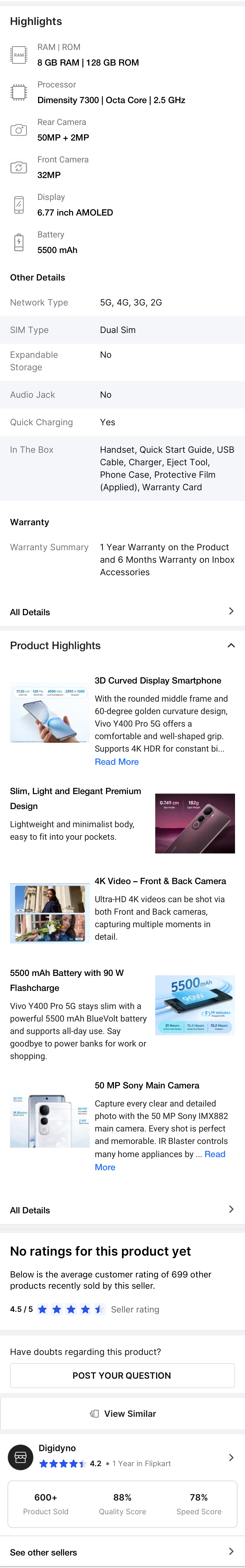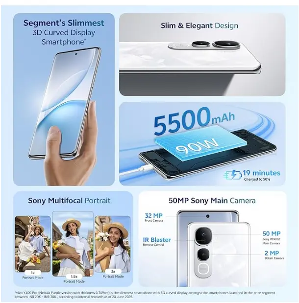 Vivo Y400 Pro 5G (Freestyle White, 8GB RAM, 128GB Storage)