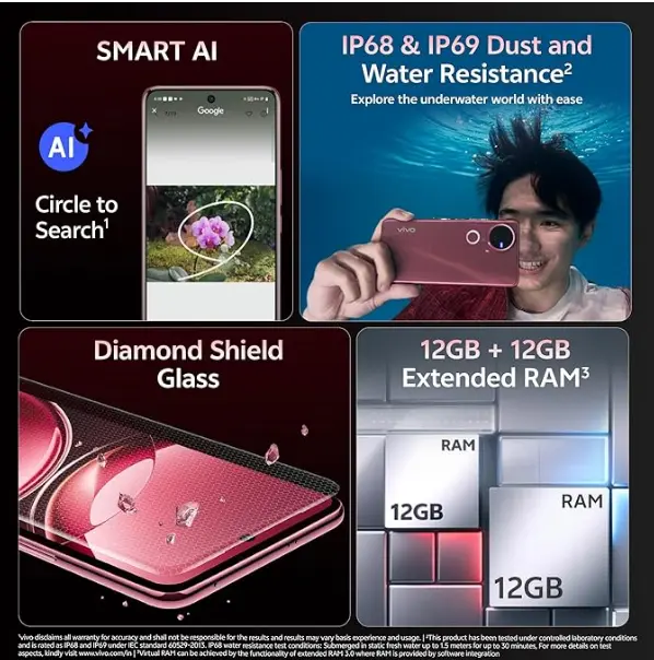 Vivo V50 5G (Rose Red, 8GB RAM, 256GB Storage)